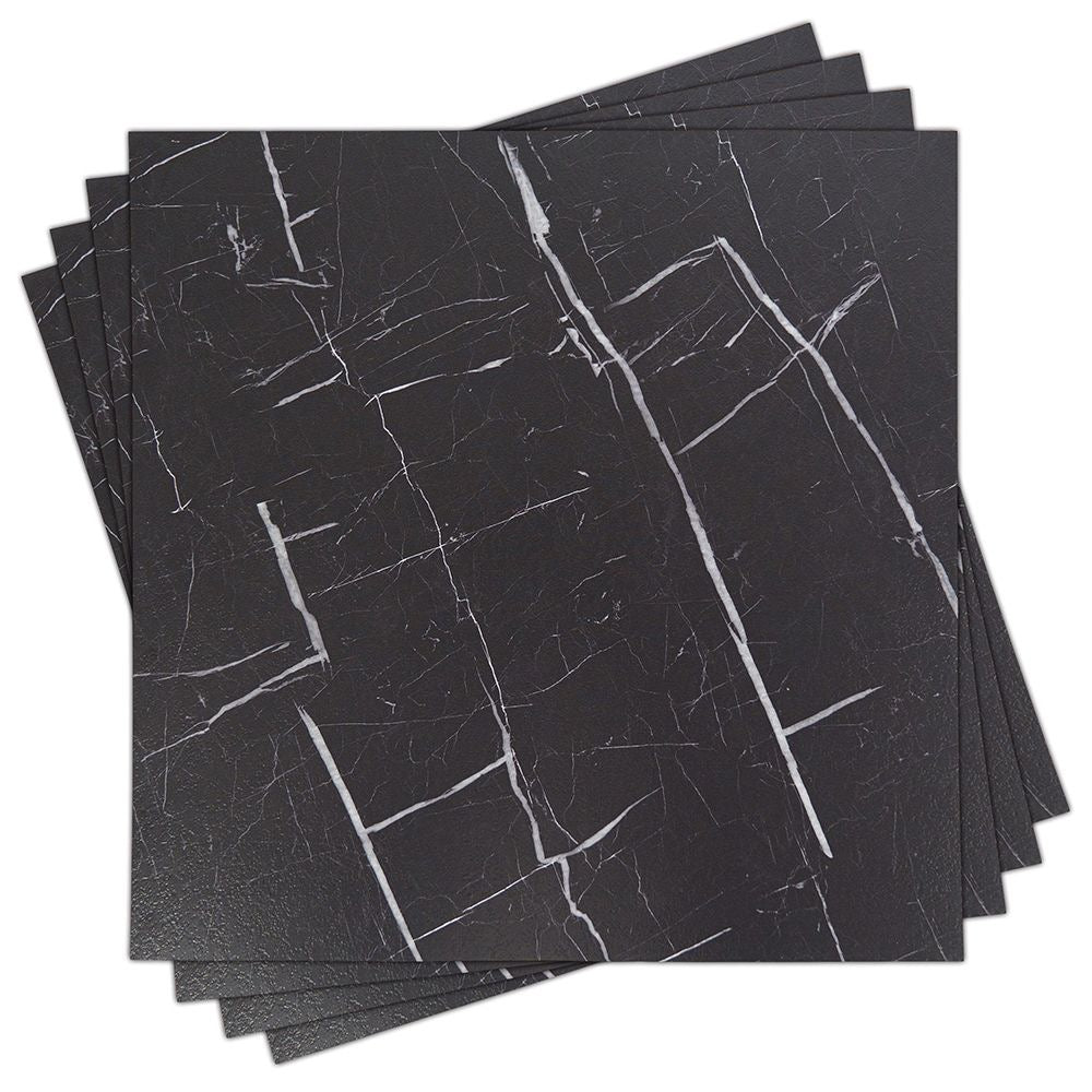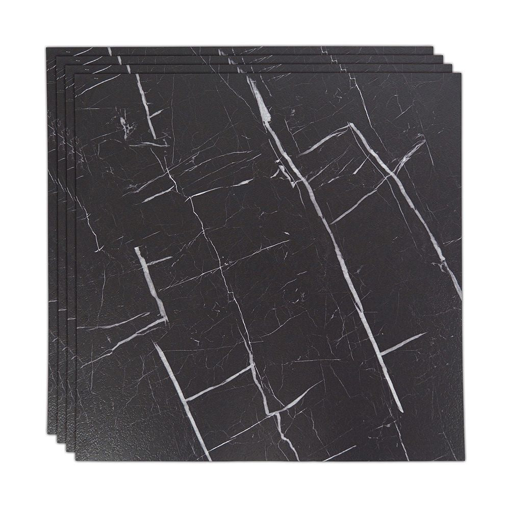 SELF ADHESIVE LUXURY VINYL FLOOR TILES - BLACK MARBLE - 45.7x45.7CM (PACK OF 24 - 5 SQM)
